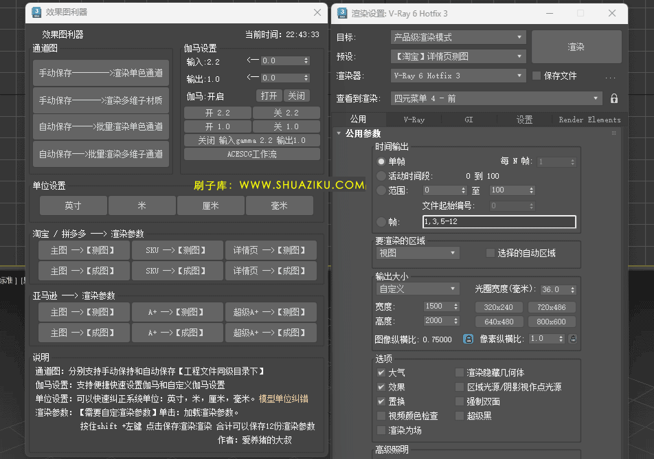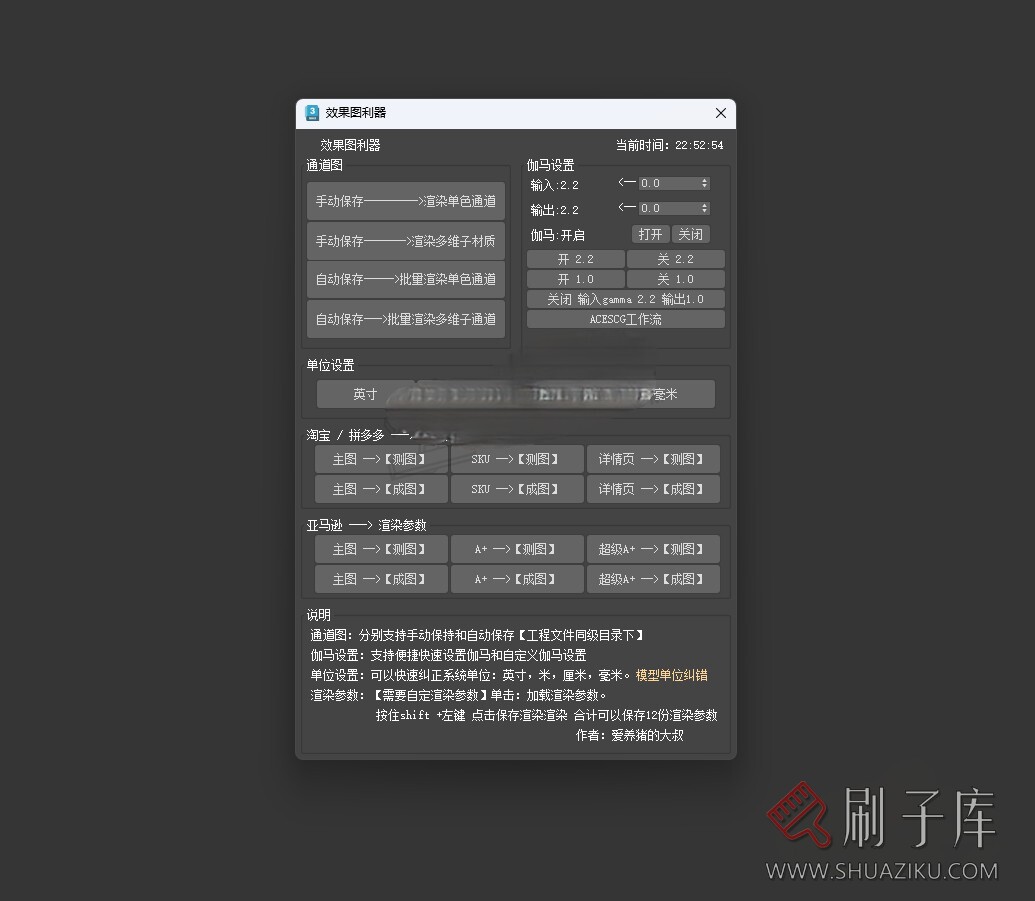 支持:伽马设置 单位设置 通道图 渲染参数加载